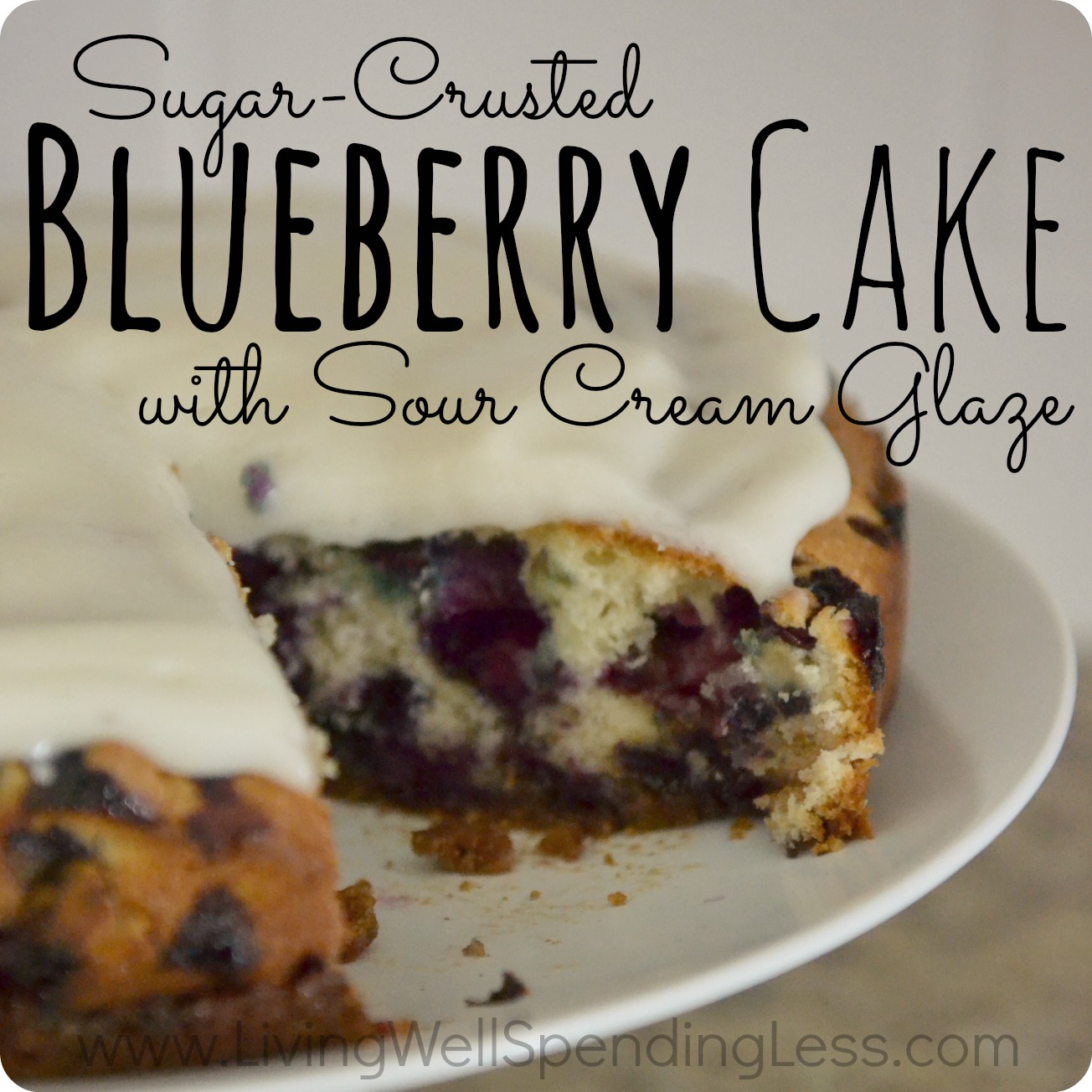 Sugar-Crusted Blueberry Cake with Sour Cream Glaze @ Living Well Spending Less