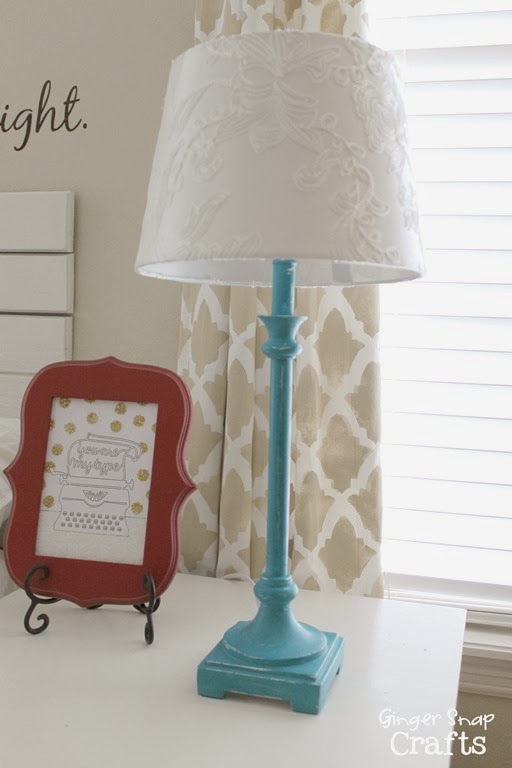 Then I put our lamp back together. I’m loving the new pop of color. So much better than boring white. ha! ;)(To see how I made the glitter framed art you can check out the tutorial HERE.)