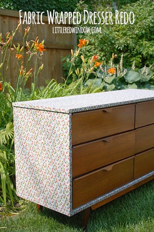 DIY Fabric Wrapped Dresser Makeover @ Little Red Window