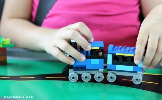 Hello! I’m sensing a travel theme to this week’s & last week’s blog posts! ha! It’s that time of year, right? While we travel I love to see my kiddos using their imaginations & creativity as we drive. It really helps make those long boring car rides seem fun! One fun game we love to play in the car involves a box of LEGO® Classic blocks. a cookie sheet & some imagination to “build their world” as they look out of the car window. Today I’d love to share how easy it was to make this LEGO Travel Tray that can be used both in the car or at home. Let’s get started!