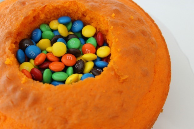 The real fun starts when you cut it open & the M&M’S® come tumbling out of the cake! It’s always a hit!