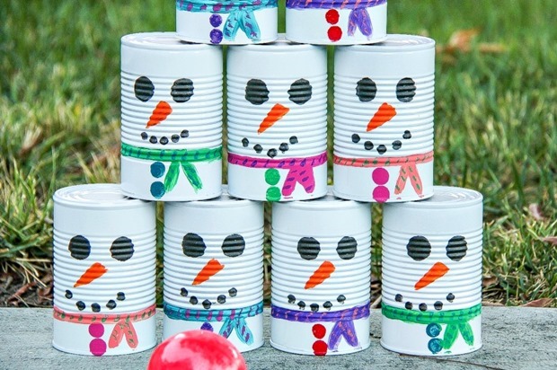 DIY Snowman Tin Can Toss @ 5 Minutes for Mom